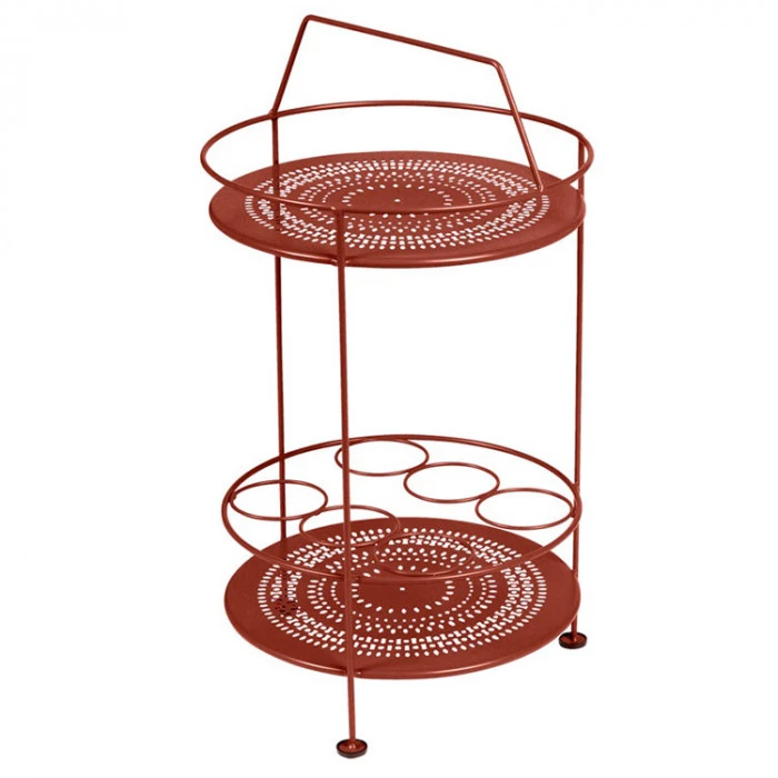 Le bar portatif sera idéal pour compléter votre mobilier de jardin Montmartre et se fondra parfaitement à votre décor. Ce petit bar s’avère très utile pour le service grâce à son porte-bouteille intégré, il vous sera possible de glisser vos bouteilles de vins ou carafes d’eau. Son double plateau en tôle acier perforée est également pratique pour disposer des objets de décoration ou condiments de cuisine. Très maniable car léger, ce bar portatif vous suivra partout.