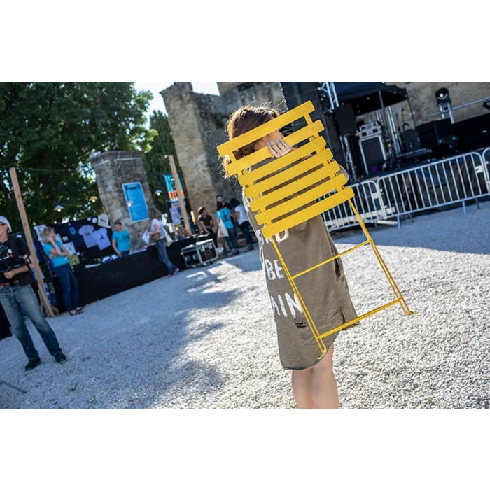 Pour résister à toutes les saisons, le revêtement de la chaise Bistro est anti-UV. La couleur ne changera pas de sitôt ! La chaise possède également des patins monobloc pour une stabilité hors pair sur tous types de sol. Enfin, pour un pliage et un dépliage sécurisé, des clips en plastique sont présents.