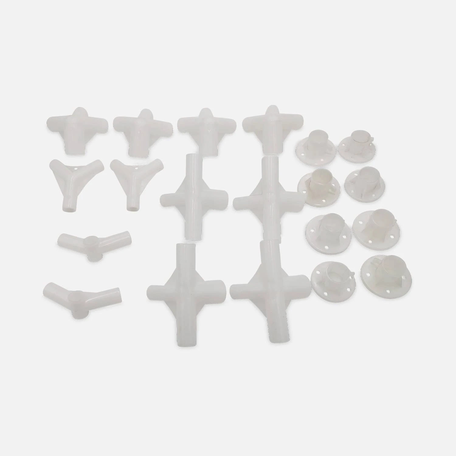 Avec ce lot complet de connecteurs, remplacez aisément les pièces nécessaires sur votre tente de réception Massilia ou Aginum. Ce lot contient :