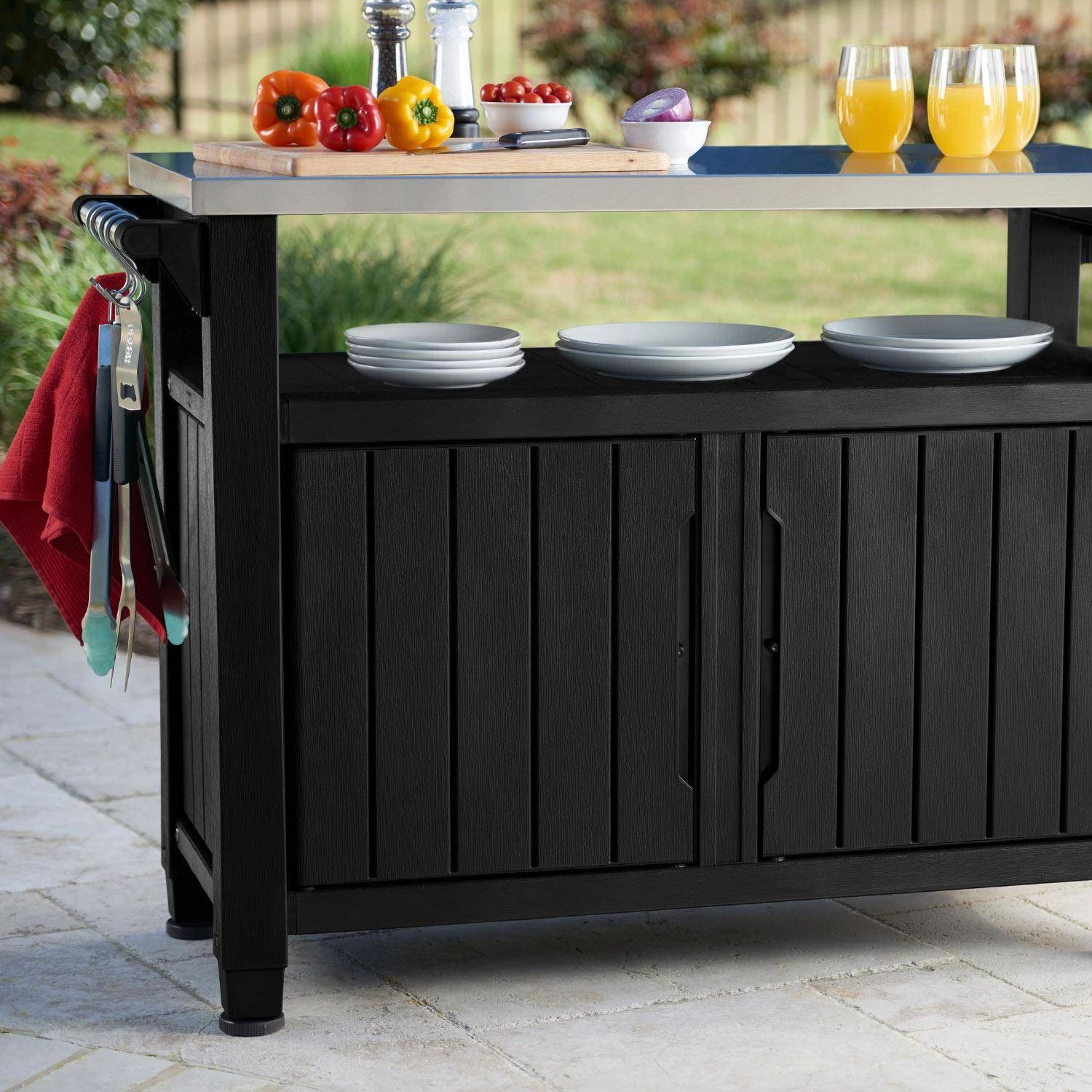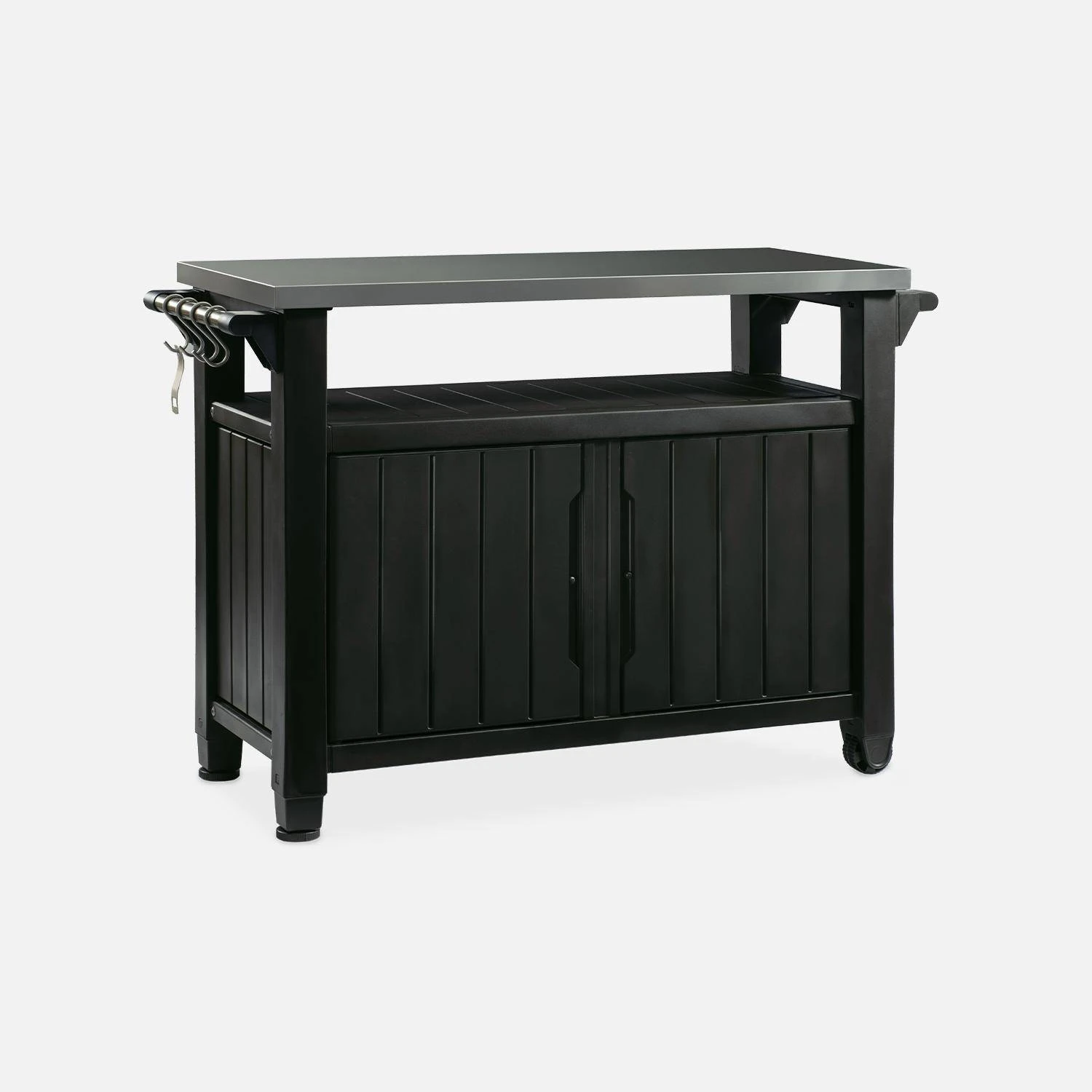 Vous n’avez pas assez d’espace lorsque vous préparez vos barbecues et cherchez un meuble d’appoint pratique? Laissez-nous vous présenter la desserte extérieure Unity XL. Cette mini cuisine d’extérieur conçue en polypropylène traité anti UV, façon latte de bois est étanche et très facile d’entretien. Dotée d’un grand plateau en acier inoxydable anti-chauffe, elle est idéale pour poser vos grillades tout juste cuites et pour cuisiner.