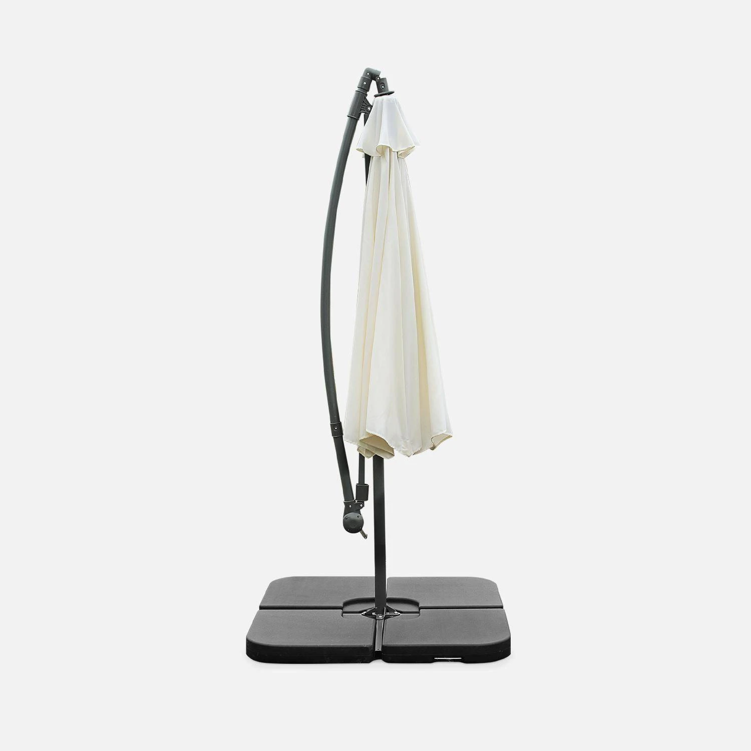 Attention, les dalles nécessaires pour lester le parasol ne sont pas fournies, vous retrouverez une sélection de dalles dans notre boutique (remplissable ou en résine).