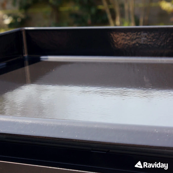 - Les soucis d’adhérence sont oubliés : l’émail permet de rendre la plancha très lisse. Les viandes, poissons ou légumes cuisinés dessus ne collent pas à la plaque et sont saisis rapidement