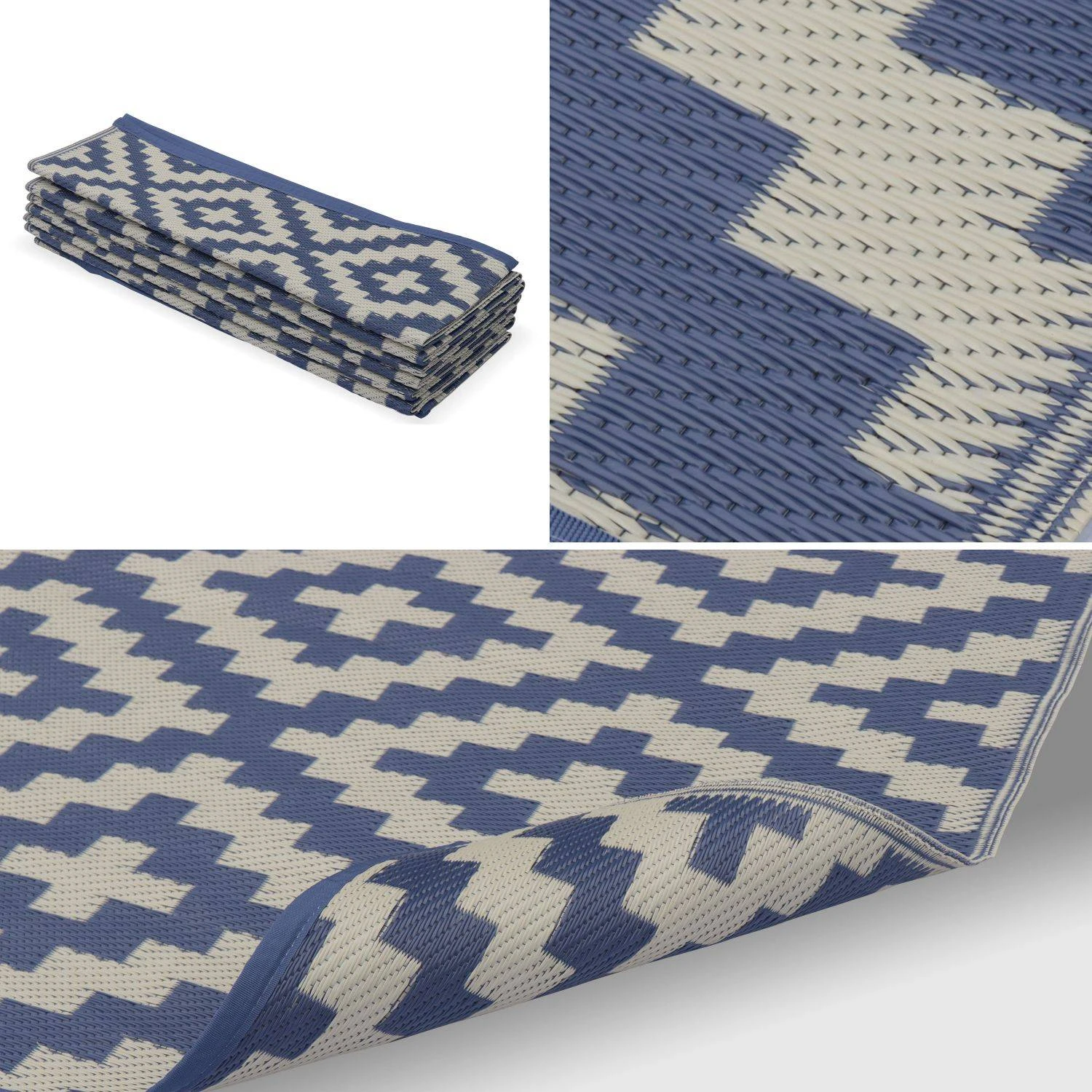Tissé à partir de pailles en polypropylène, ce joli tapis apporte une touche de fantaisie à votre extérieur avec son motif graphique tendance. Sa finition est soignée grâce aux bordures situées à chaque extrémité. Cela lui permet de trouver sa place aussi bien en intérieur qu’à l’extérieur. Très léger, ce tapis réversible se déplace facilement selon vos envies ou la météo. Il peut aussi être emmené aisément pour un pique-nique ou à la plage.