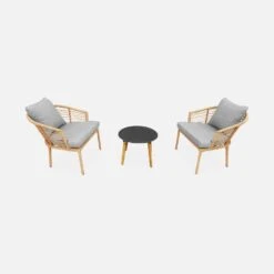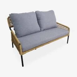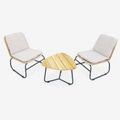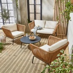 Salon De Jardin Cannage Et Bois 4 Places, Beige Couleur : Teck